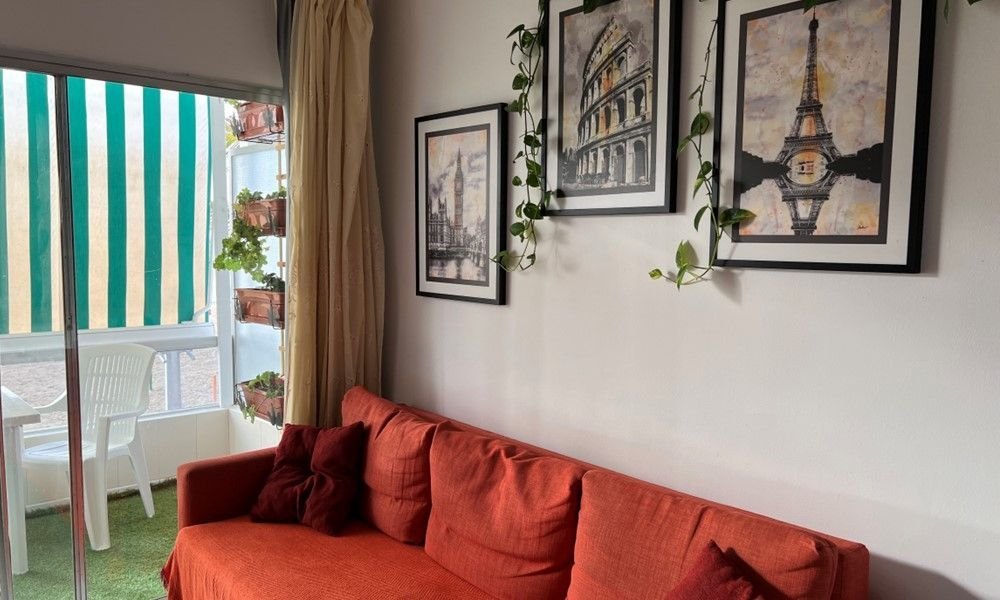 Camas: Cama matrimonial de 1,35m en dormitorio, Sofá cama de 1,50m en sala.