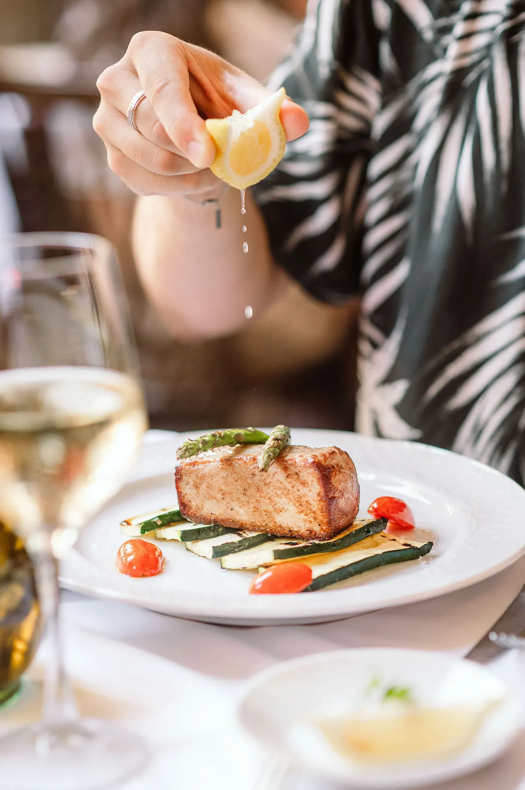 - Atún rojo a la plancha con espárragos, calabacines y tomates cherry:25,90