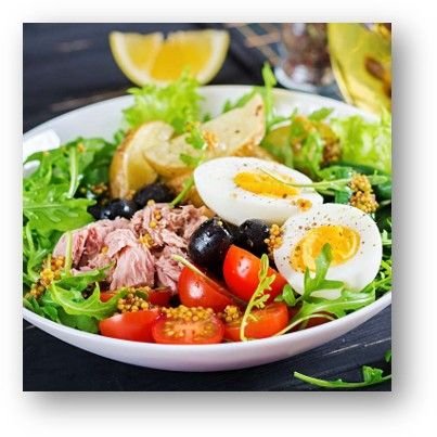 Lechuga, huevo cocido, espárragos, tomates cherry